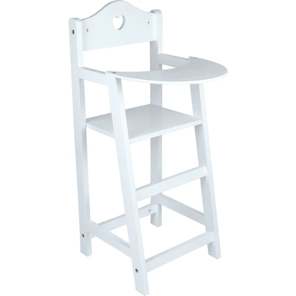 Ein schicker Puppenhochstuhl, der in der Farbe Weiß lackiert und mit kleinem